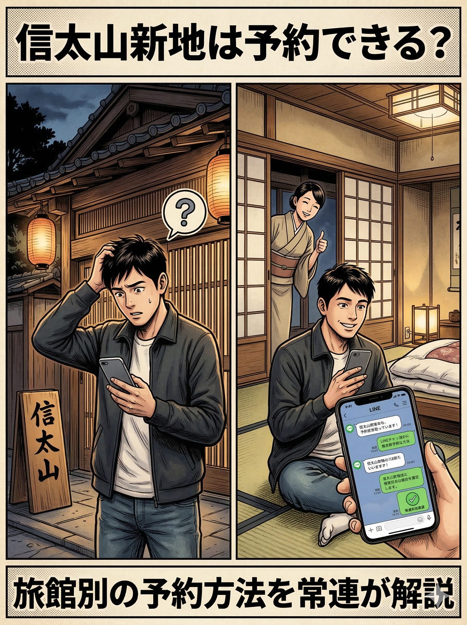 - 予約手段は旅館によって異なる(LINE or 電話)